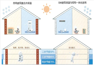 为了达到建筑保温节能要求,传统建筑墙体厚,且需要增加复合外保温层;而选用ZT建筑保温与结构一体化系统,可在合理的墙厚范围内做到以单一墙体材料满足建筑保温节能要求。